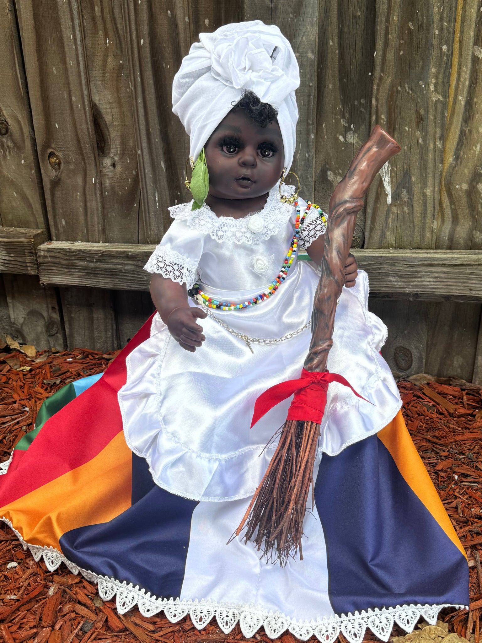 Ella es Mamá Francisca, Francisca 7 Saya, una representación llena de espiritualidad, con una altura de 22 pulgadas. Está confeccionada en goma completa, lo que le da excelente calidad y resistencia.