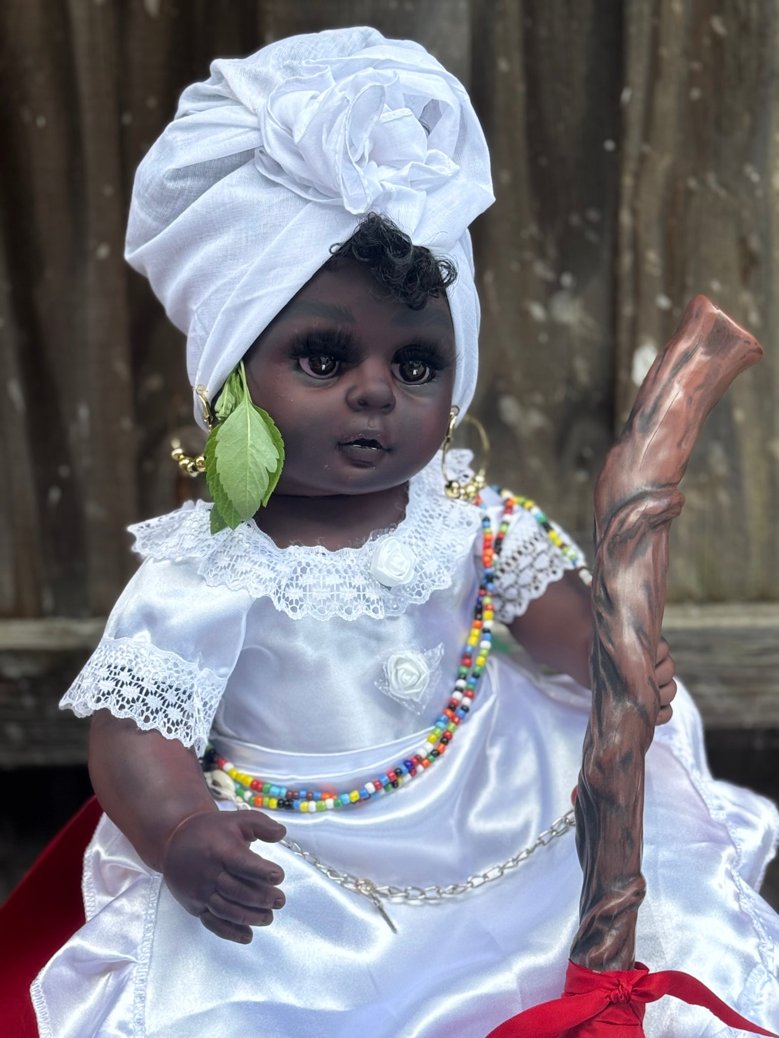 Cada parte de su rostro y su atuendo lleva el sello de mi trabajo de realismo artesanal, haciendo de esta pieza algo único y exclusivo, como todas mis creaciones.